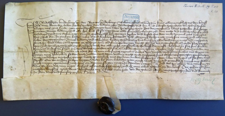 Urkunde vom 7. Juni 1459, aufbewahrt im Thurgauer Staatsarchiv, Frauenfeld unter der Referenz StATG 7'47'30. Eine pdf-Kopie der Urkunde steht auf der Download-Seite zur Verfügung.