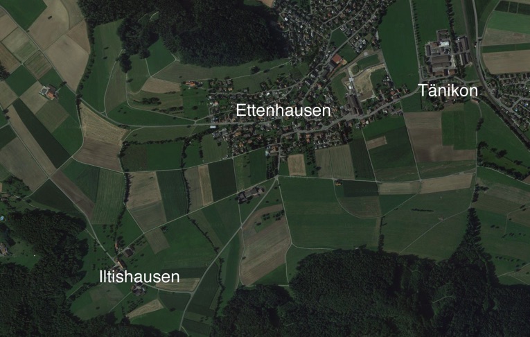 Ein Blick aus der Höhe zeigt deutlich wie sich Ettenhausen über die letzten 160 Jahre weiterentwickelt hat und heute faktisch mit Aadorf zusammengewachsen ist. Auch Tänikon ist mit den ehemaligen Anlagen der Eidg. Forschungsanstalt grösser, ist aber immer noch klar abgegrenzt von Ettenhausen und Guntershausen.